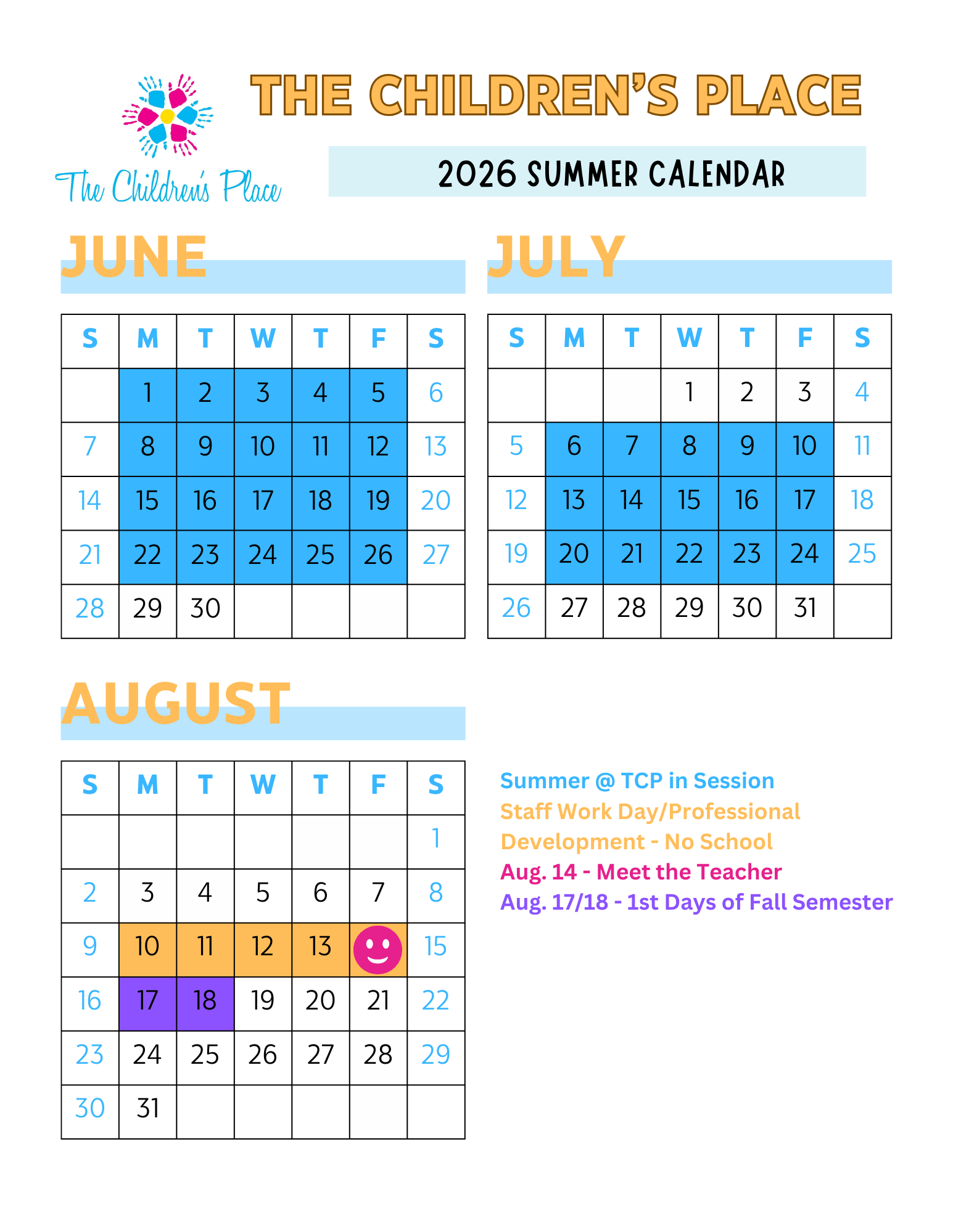 Class Size - The Texas Department of Family and Protective Services Licensing Division mandates specific caregiver-children ratios. The Children’s Place follows a stricter student-teacher ratio for our classrooms detailed below: